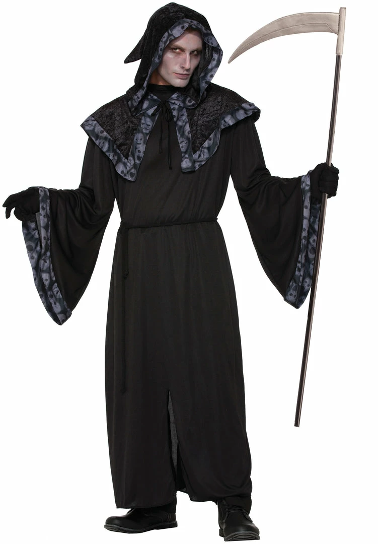 This dark arts outfit features a black robe and collar with hood, you will look every bit the evil death bringer that you want. Both the robe and the hooded collar are trimmed with fabric made from the faces of the damned and lost souls.