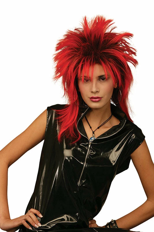 Deluxe Black and Red Tina Turner style mullet wig. One Size