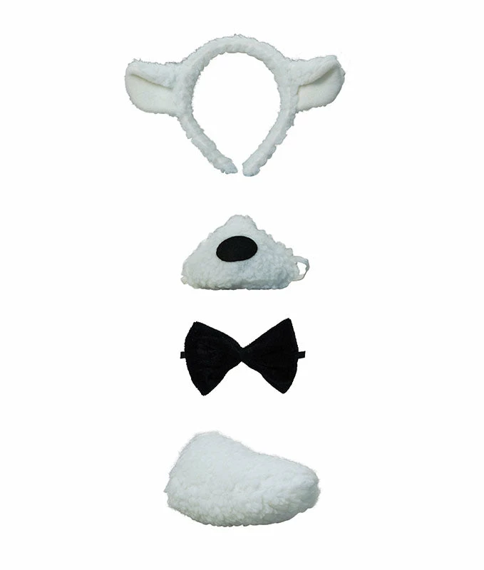 Deluxe Lamb Set Fancy Dress Kit With Sound!! Farmyard Animal This Lamb Accessory Kit includes Nose, Bow Tie, and Tail, and Headband with Ears. Press Nose to Hear a Lamb! Perfect for school nativity play or fancy dress party costume.