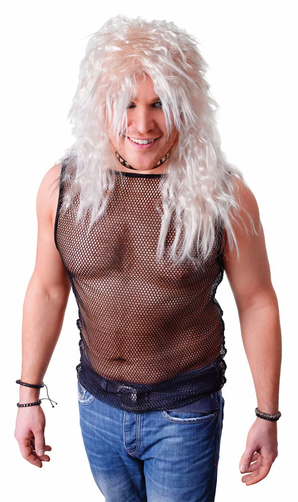 Release your Inner Rock star with this awesome 1980’s Rock Star wig in blonde. Perfect for finishing off a 1980s costume, or this wig is also quite popular as a Viking wig. The wig is styled shorter at the top and longer at the sides and back, why not team with a headband and bring the 80’s back! Also available in Black, don’t forget your wig cap and Rock on!