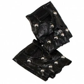 Channel your inner punk with our Studded Fingerless Gloves! Our Studded Fingerless Gloves feature a pair of black faux leather gloves with brass dome studs covering the gloves and are cut off at the wrist and are fingerless. Perfect for jazzing up your costume or fun everyday wear! One size fits all. For all our 80’s accessoriesclick here