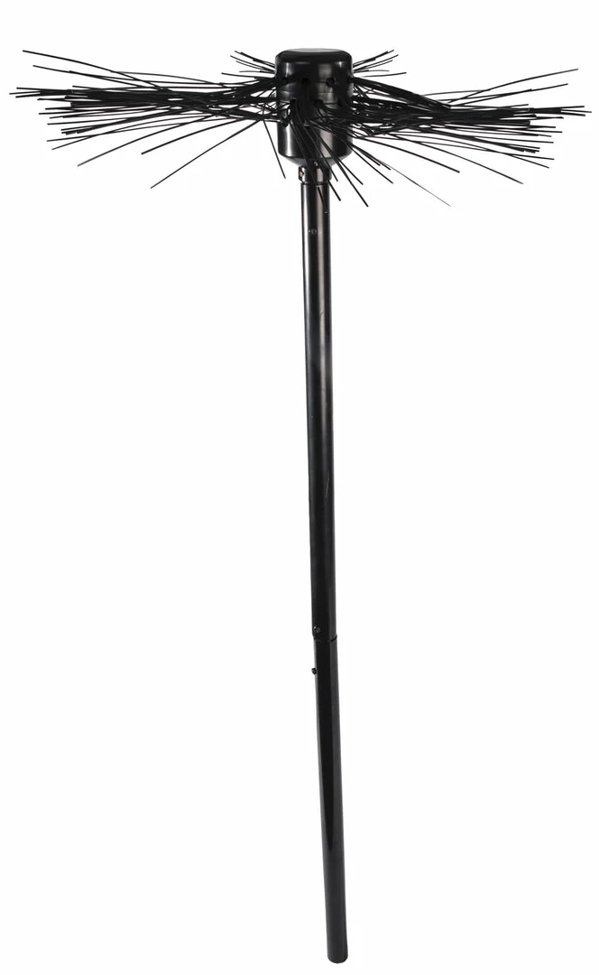 This chimney sweep is approximately 37″ tall and all black. For safe keeping you can dissemble the broom by unscrewing the pieces so it can be stored in a compact place.