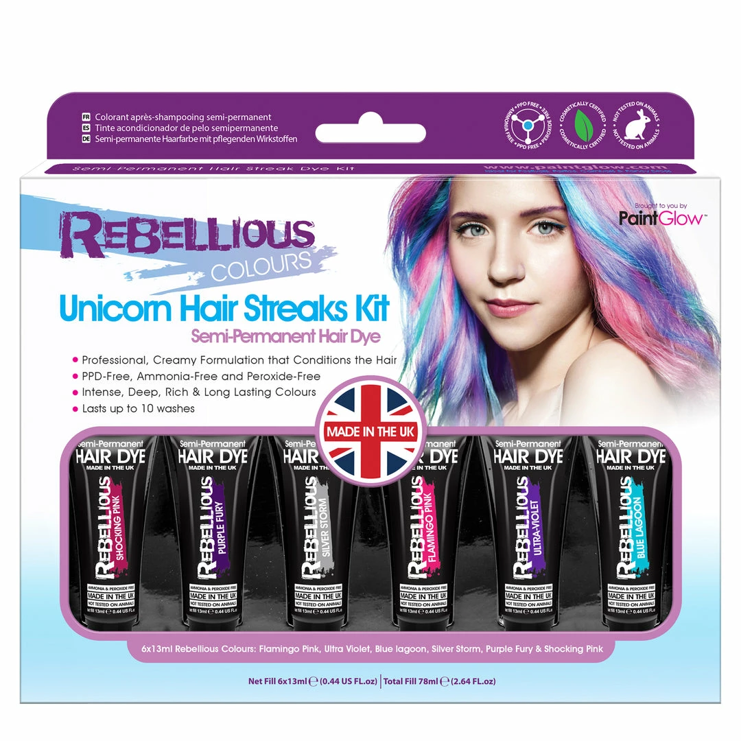If you’re tired of your natural hair colour and want something with a bit more bang to it, check out the Paintglow Rebellious Colours Unicorn Semi-Permanent Hair Dye giftset.