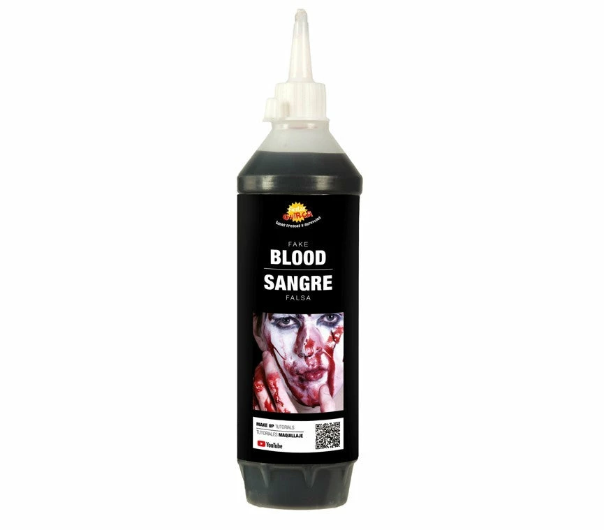 Create gruesome special effects with this 450ml Large bottle of amazingly life-like fake blood. Excellent for simulating realistic wounds or looking like you just fed on a fresh victim, this fake Blood is ideal for any monster hungry for flesh. Makes a great finishing touch for your halloween costume. This fake blood looks and flows like real blood. Clean and easy to carry.