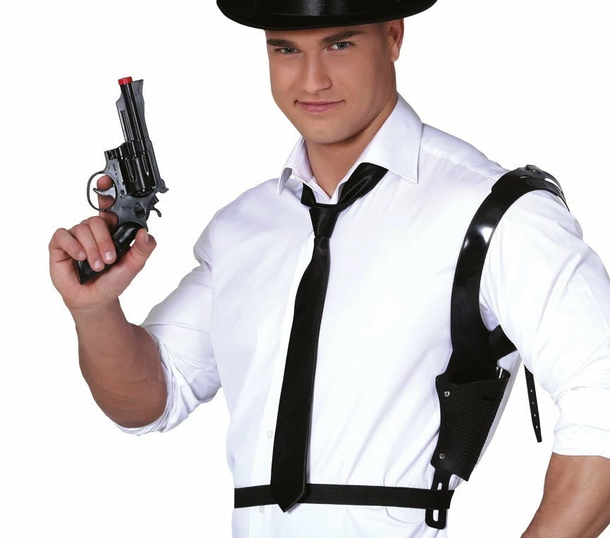 If you’re dressing up as a fearsome cop, gangster or detective this year, don’t forget the key accessory to give you that authentic look; this great leather look Shoulder Holster and gun is the perfect accessory for both gangster and detective fancy dress costumes.