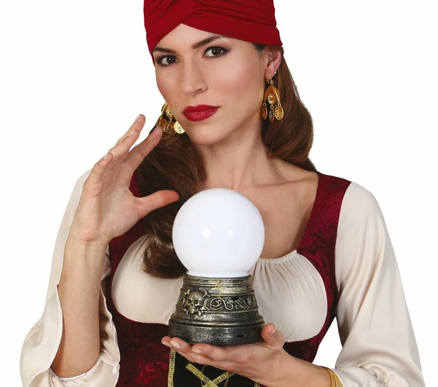 Look into the future and see what your next fancy dress party has in store with our Gypsy fortune teller Crystal Ball prop. This great accessory features a ball with flashing Lights and sounds. 18cm in height. Perfect also for clairvoyant costumes.