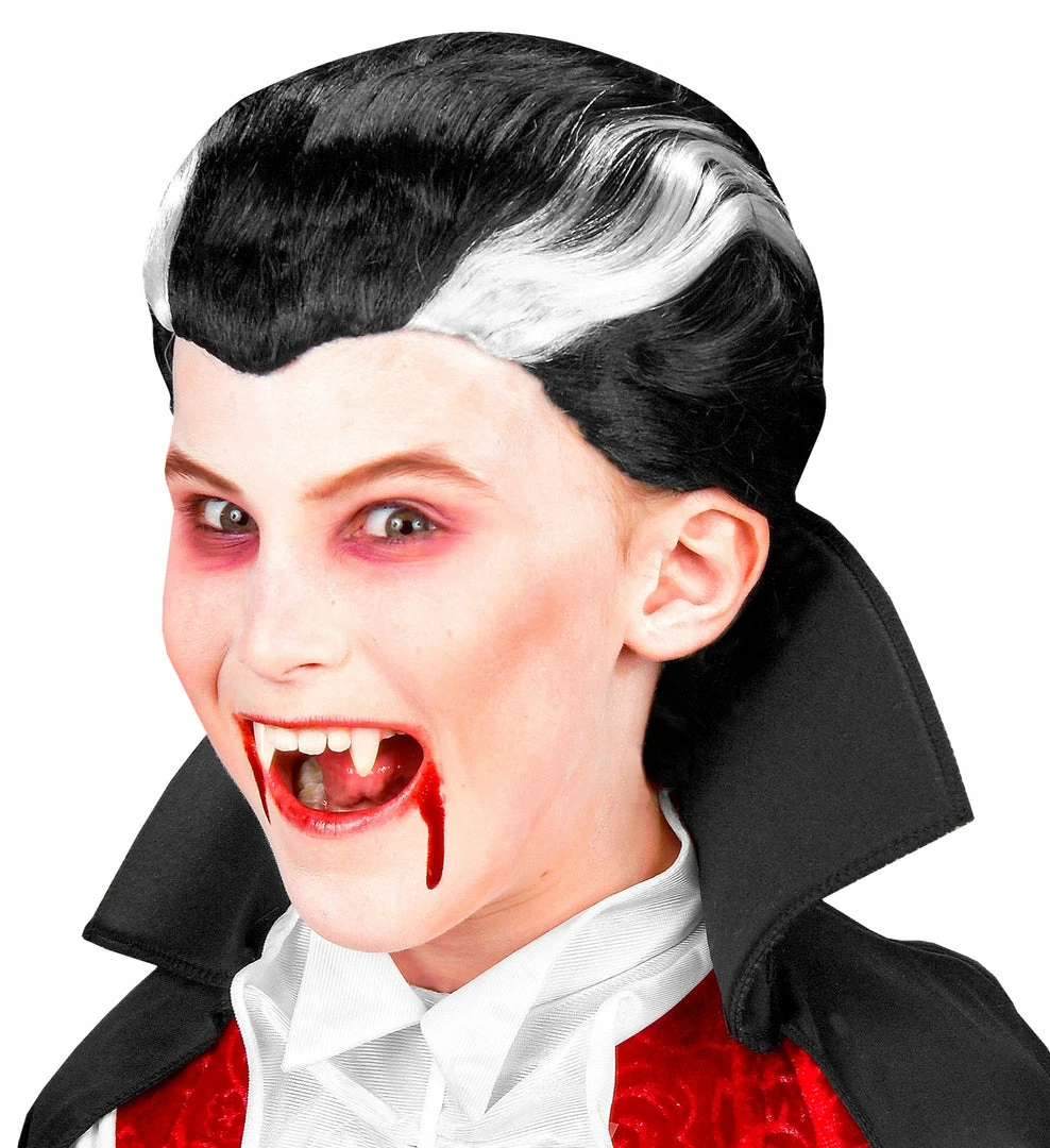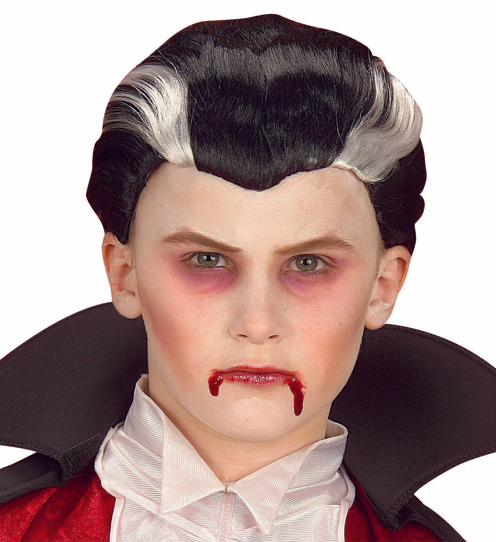 If you on the hunt for necks this Halloween then our children’s ‘s Dracula Vampire Wig is the perfect accessory for you! Included is a glossy looking wig which has been constructed from quality synthetic hair that has been dyed jet black and styled into a slick back hair do with 2 iconic white streaks.