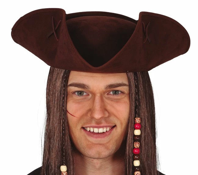 Add the finishing touches to any Pirate, colonial or historical costume with this brown tricorn hat.