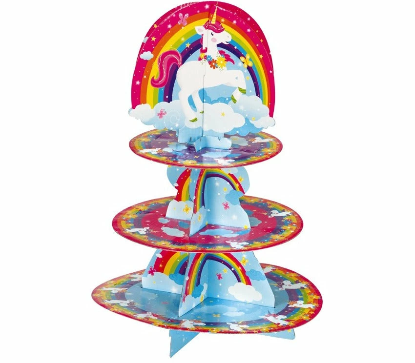 Show off your baking skills with this fantastic Unicorn cake stand. Made from cardboard it features Unicorns, clouds and rainbows.