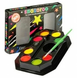 Cosmic Colours Face And Body Paint Kit Snazaroo UV activated face and body paint palette. Includes eight colours. Approx 2ml per colour, vivid colours, easy on – easy off, long lasting. Includes 1 brush for easy application.