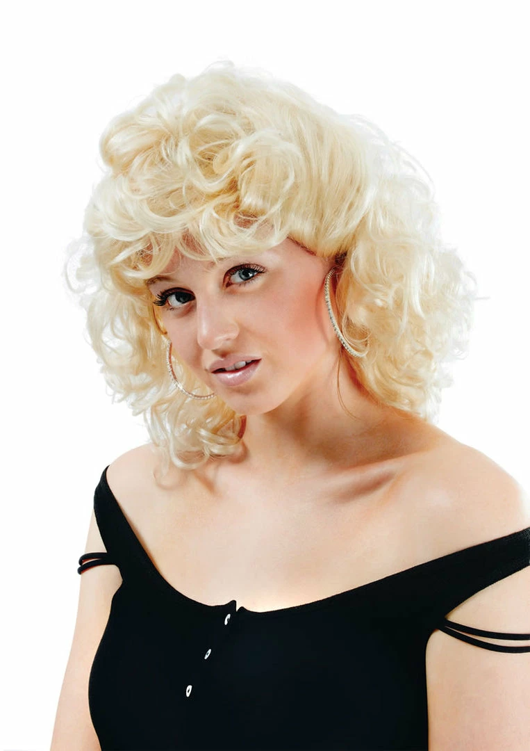 This gorgeous wig is Blonde with Curls for that 1950s rockabilly look.