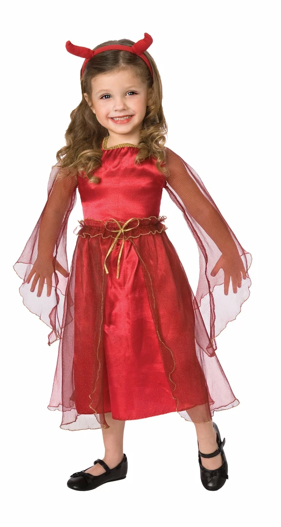 You can’t go wrong with this fancy little girls red devil costume! Costume includes fancy red devil dress and horned headband. Includes: Includes Fancy Red Devil Dress And Horned Headband. Small 3-4T