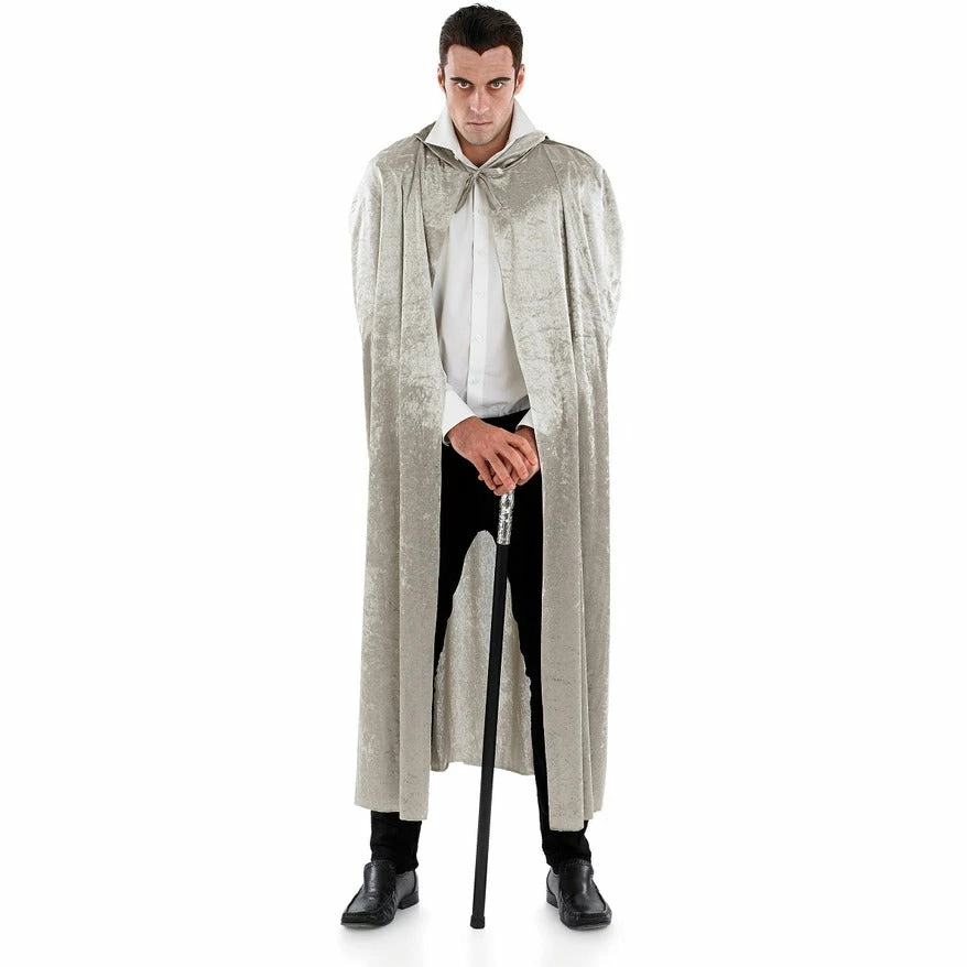 This gorgeous ankle length grey cape or cloak with an attached hood and ties to the neckline.