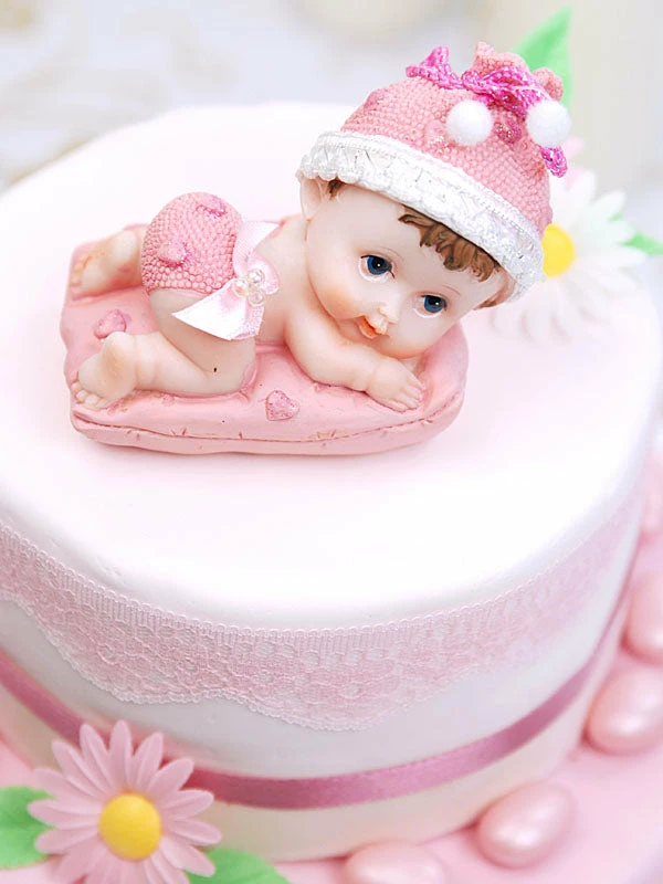 Shhh. This little baby girl is trying to sleep. This cute pink figurine features a baby girl lying on a pillow can be used as a cake topper for a baby shower or boxed for a gender reveal.