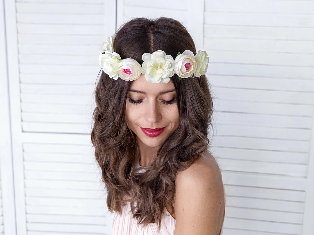 This romantic accessory is perfect for wedding and hen parties. They are distinguished by precise workmanship with natural materials and long satin ribbon which allows to adjust them. Unusual hair and wrist ornaments to look beautiful during important events.