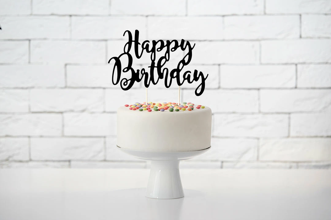 Make the day even more special by adding this gorgeous ‘Happy Birthday’ Cake Topper made of black mirror paper. The gorgeous scripted font is perfect for placing them on cakes to complete the look of your celebration