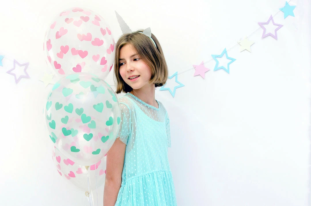 Strong crystal clear Balloons with Hearts, Crystal Clear with light pink, five-sided print, diameter 30 centimeters.