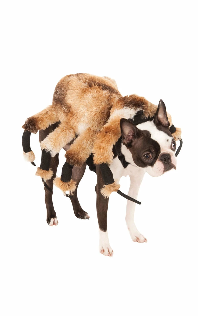Giant Spider Dog Costume Contains deluxe plush pet costume with eight pliable legs, elastic stomach strap and adjustable neck strap. We recommend ordering a size larger than you usually would for this item.