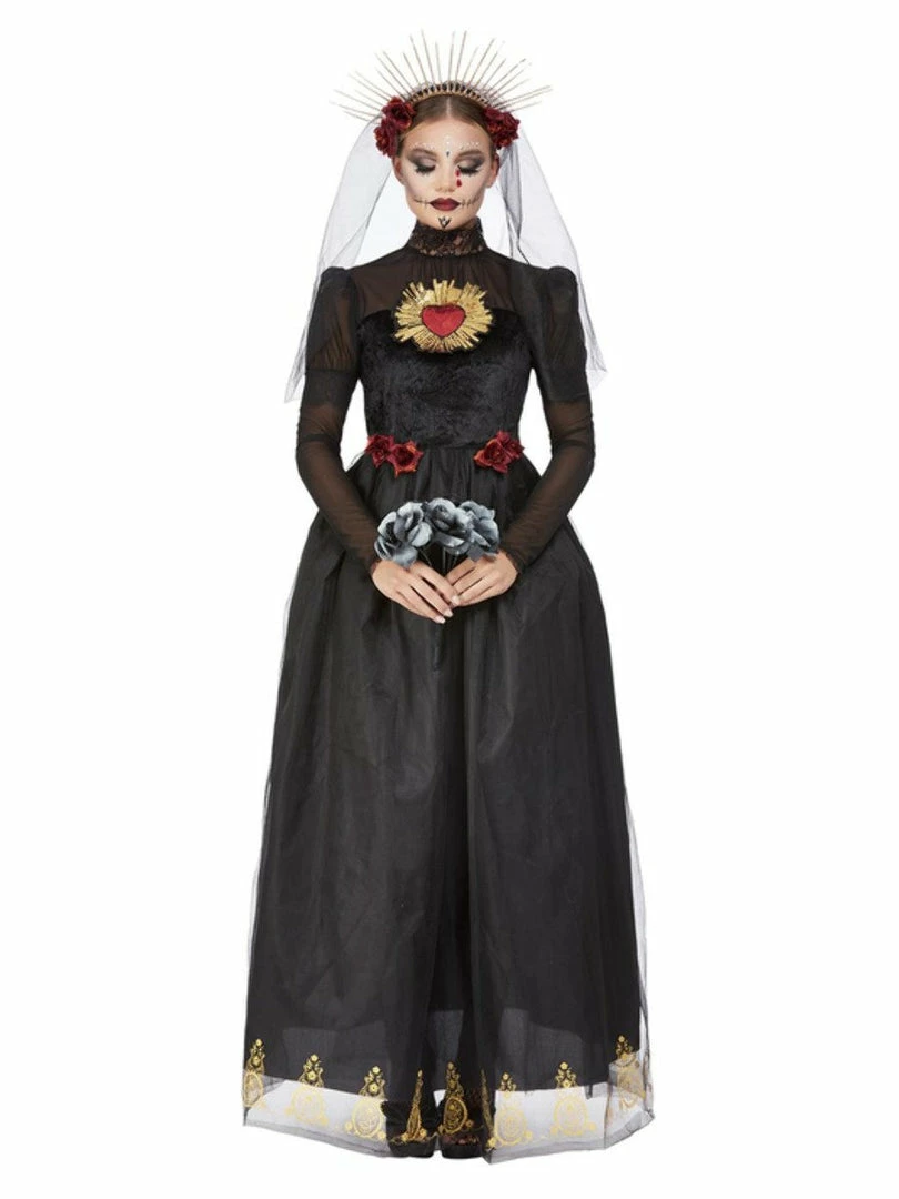 This stunning Day of the Dead Sacred Heart Bride ladies costume is a real eye-catcher, sure to help you make an entrance at your Dia De Los Muertos or Halloween fancy dress party.