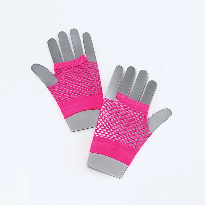 Stay funky fresh with our 1980’s short Neon Pink Fishnet Gloves.This retro Pink Fishnet Glove is 100% nylon and features 80’s fingerless styling. Hand washable. One size fits most teens and adults.