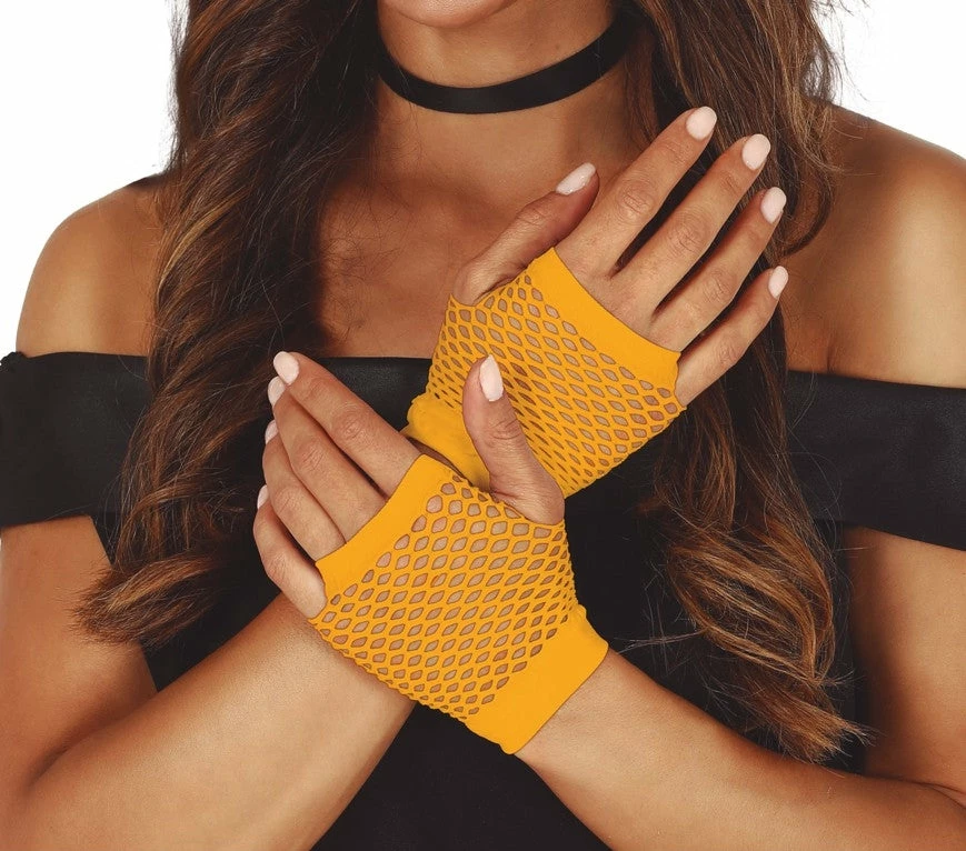 Stay funky fresh with our fingerless Neon orange mesh gloves. This retro yellow fishnet Glove features 80’s fingerless styling. Perfect for 1980’s themed events or parties.