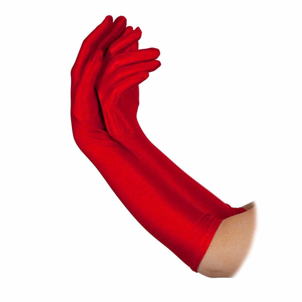 Ladies Long Red Gloves. Add a touch of class to your 1920’s fancy dress flapper costume with these elegant and seductive Red Gloves. Included is a pair of long plain red gloves and they measure 18″/46cm and are available in one size that should fit most adults. A perfect costume accessory for a burlesque, flapper or halloween fancy dress outfit. Includes Long Red gloves