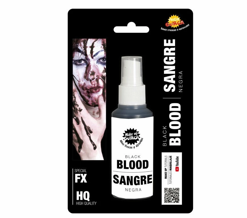 This fake black blood spray is perfect for when you need some blood for spraying clothes or face for your zombie or radioactive costumes. It’ll cover all with a bloody black mist. For face, clothes and horror decor! Contains 60ml. Washes out with soap and water
