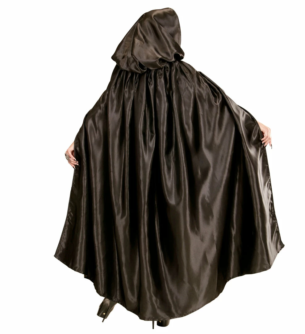 This luxurious black satin cape or cloak is perfect for Venetian masked balls, Carnival or vampire and witch costumes.