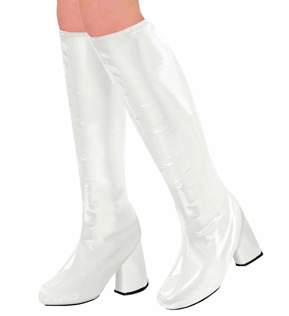 Let out your inner mod, disco diva or 60’s chick with these fantastic boot covers. These fun top quality white go-go boot shoe covers are sure to complete any mod costume or go-go girl costume with style! An elastic strap on the bottom keeps the boot covers in place.