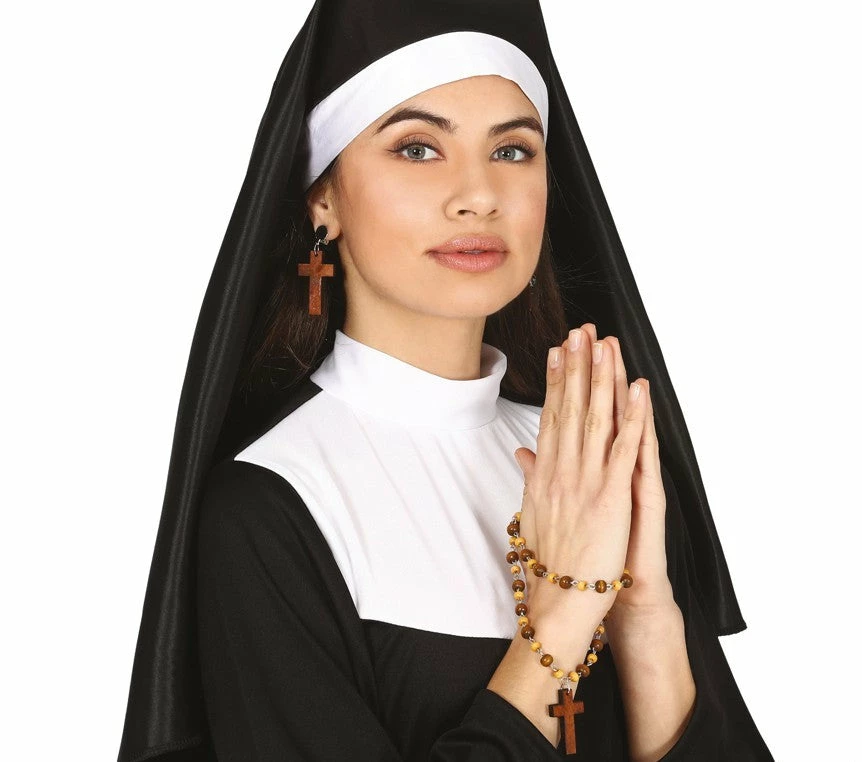 Add a bit of religious bling to your Nun or Priest costume with this fantastic Wooden Cross & Rosary Earring Set.