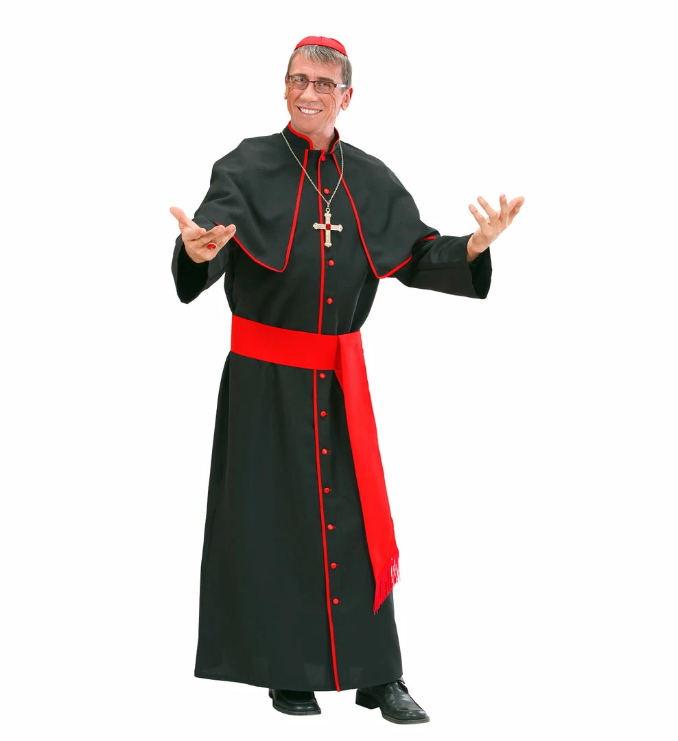 Hang out with the popes, bishops, archbishops and priests as a member of the clergy with this fantastic men’s black Cardinal fancy dress costume. Perfect for Fr Ted themed parties and events especially bishop Len Brennan.