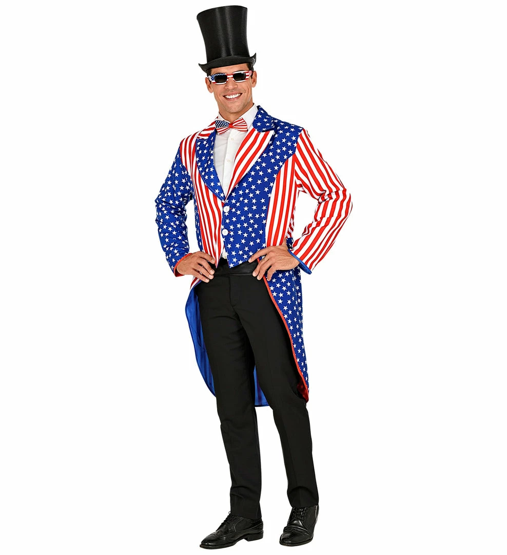 The American tailcoat for men is ideal for rocking up as Uncle Sam at a stars and stripes themed party, 4th July or Independence celebrations, sports events or even dance performances on the theme of the USA.
